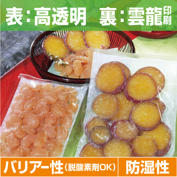 防湿性・透明性に優れています。低コストタイプの経済的な包装です。(親商品のキャッチコピーとして登録)